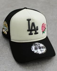 New Era MLB Los Angeles Dodgers 9Forty A-Frame Rose Trucker Mesh Snapback Cap - Black