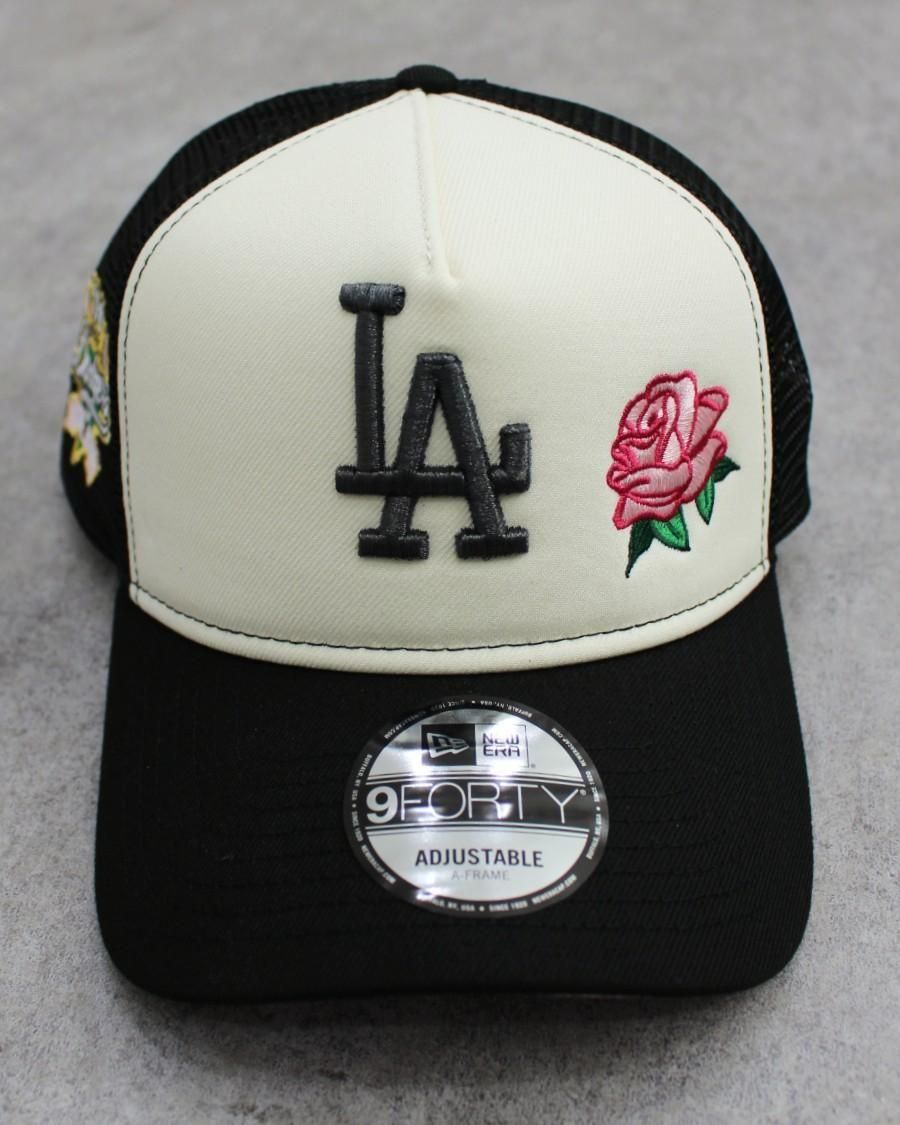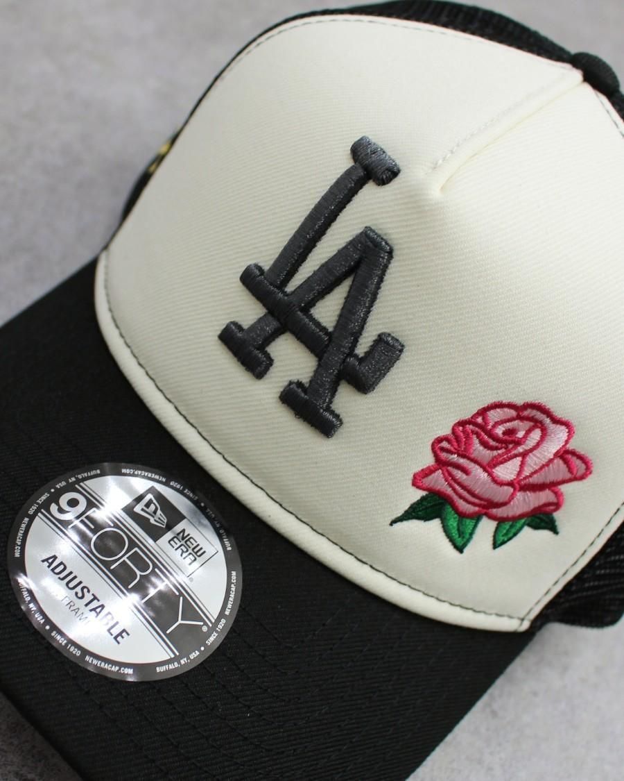 New Era MLB Los Angeles Dodgers 9Forty A-Frame Rose Trucker Mesh Snapback Cap - Black
