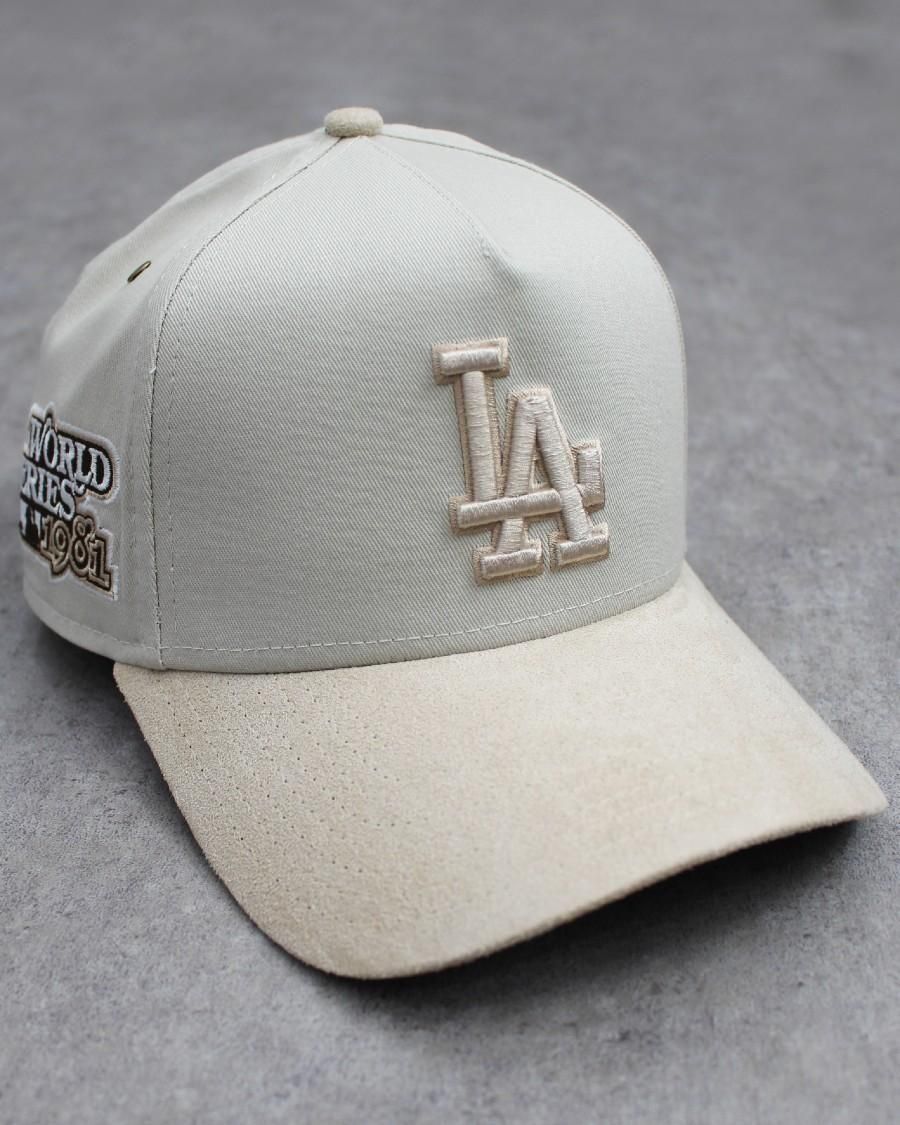 New Era MLB Los Angeles Dodgers 9Forty A-Frame Suede Visor Strapback Cap - Stone/Cream